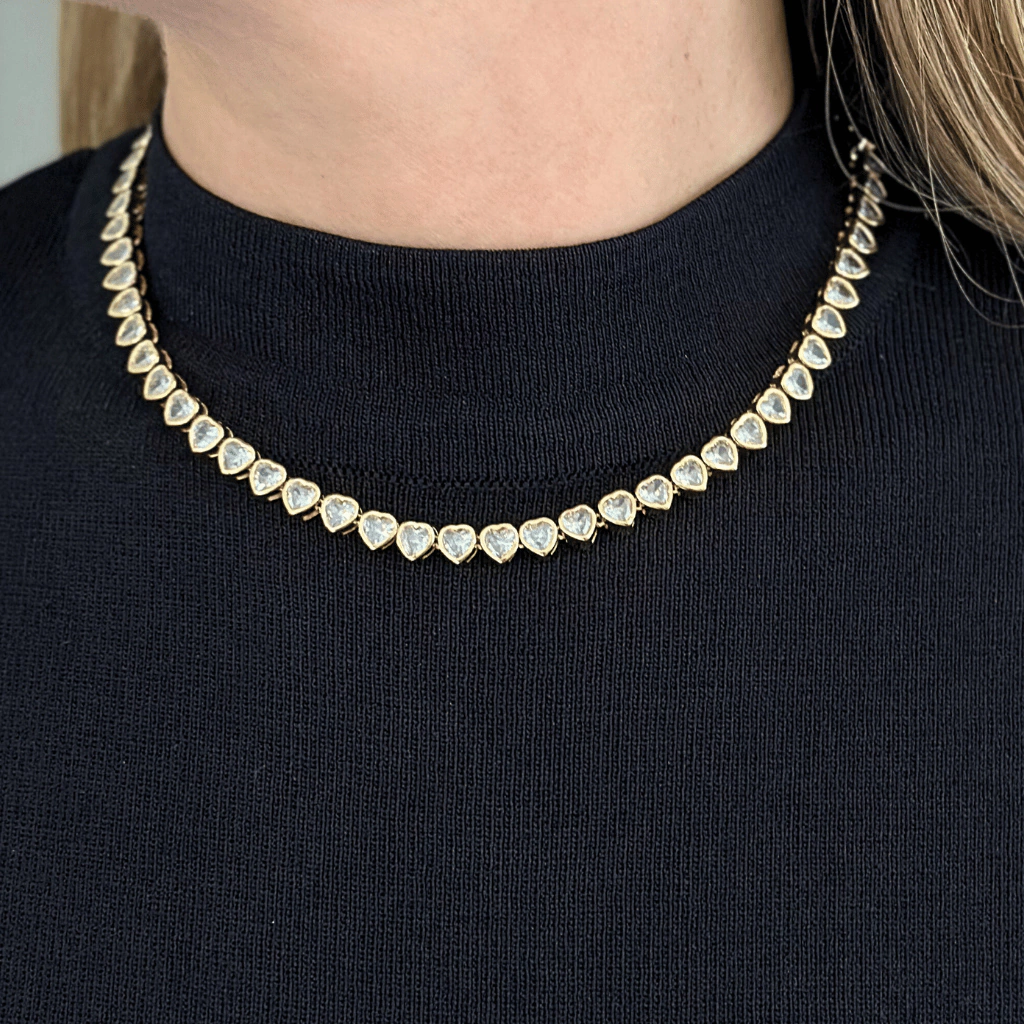 Riviera de Zircônia Coração – a joia perfeita para realçar seu estilo com sofisticação e delicadeza. Com um design exclusivo em formato de coração e zircônias brilhantes, esta peça é ideal para o uso diário ou para ocasiões especiais que exigem um toque de elegância.